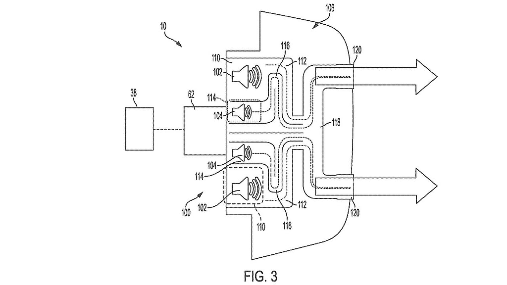 “Advantageously, the system utilizes digital sounds with some basic filtering, but uses the tuned exhaust assembly to fine tune the sound in the acoustic domain instead of the digital domain, which creates a more authentic sound,” the filing explains.