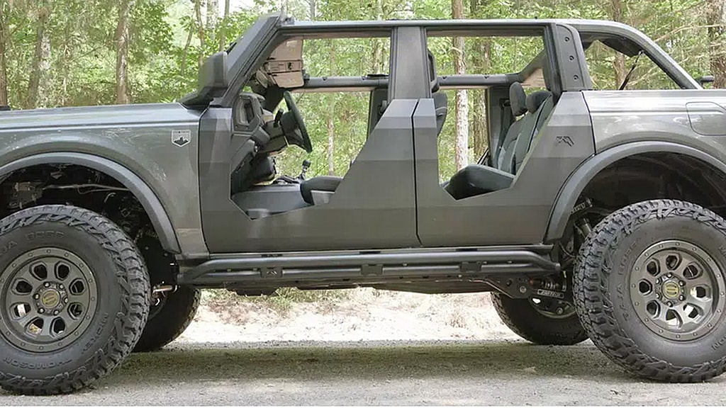 The “Convertible Skeleton Door” combines a tube door, like those currently sold as accessories for the Ford Bronco, with a removable shell.