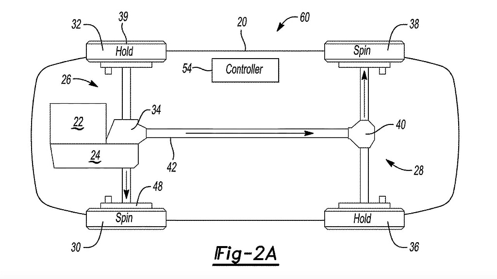 Earlier this year, Ford filed for a patent on a similar feature for electric cars that would allow them to perform burnouts with either the front two tires or the rear two tires, but this one expands on that. It covers electric and internal combustion engine vehicles, with both direct drive and differentials, and isn’t limited to front or rear burnouts.