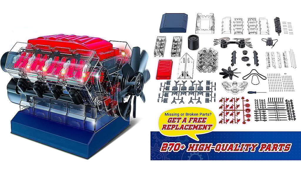 Playz V8 Combustion Engine Model Building Kit for Kids: $55.96