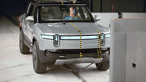 The Rivian R1S SUV based on the same platform is also a Top Safety Pick+, but it needed to be redesigned to meet the standard after falling short on the moderate front overlap portion of the test the first time the IIHS evaluated it.