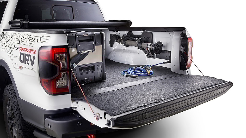 Ford also gave the upcoming 2024 Ranger the ORV Package treatment with an ARB overland suspension kit, ARB bumpers SOLIS lights and a 47-quart refrigerator/freezer.