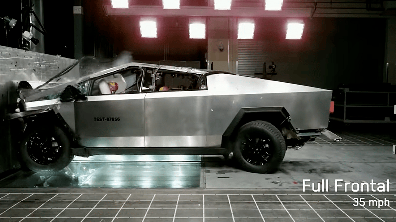 The Tesla Cybertruck’s stainless steel body can take a swing from a baseball bat without denting, but a love tap with another car is a different matter.