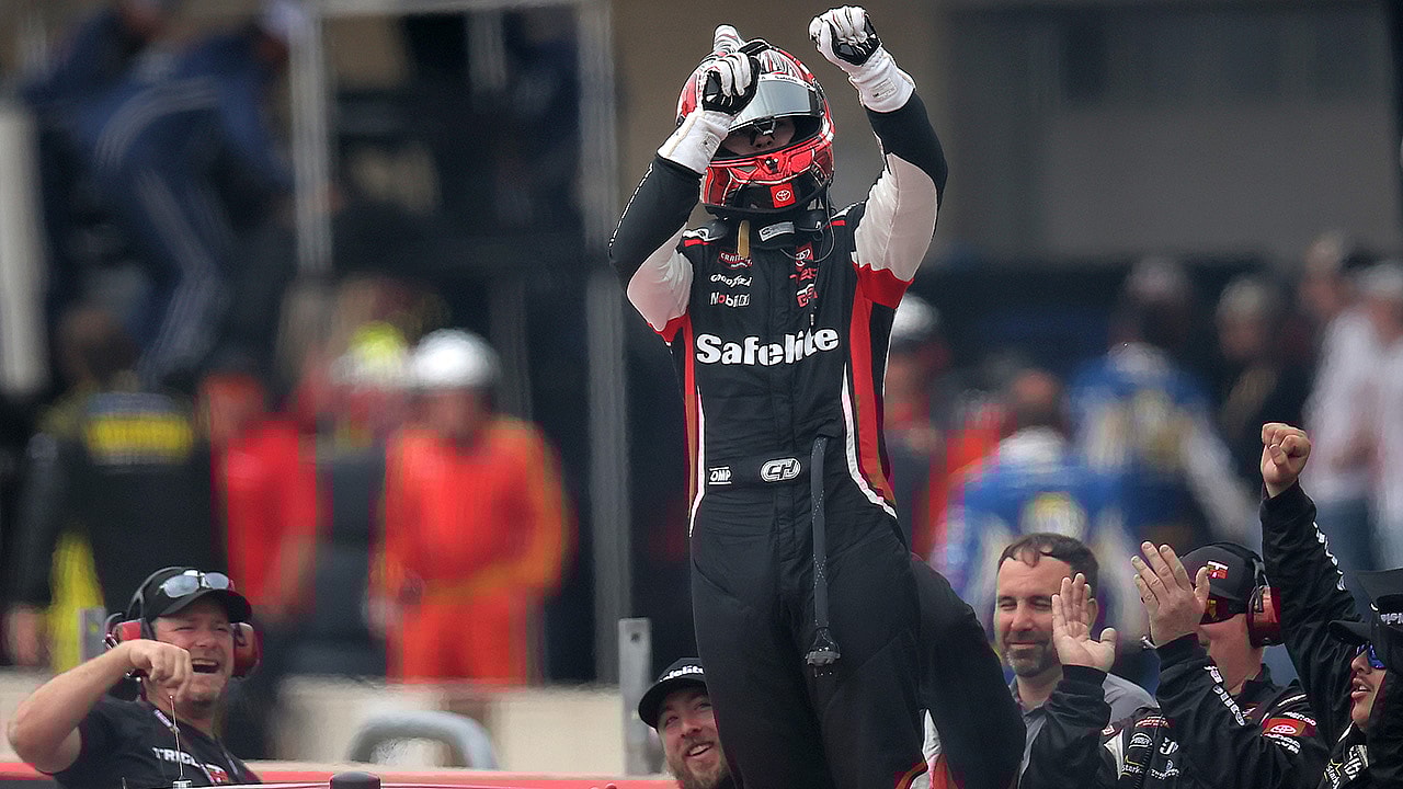 Pole-sitter Connor Zilisch, who set a lap record during qualifying for his first ever Truck Series race, went off the track under braking at the first turn in the race, but put in an impressive drive from the back in the field to finish fourth behind full-time Truck Series drivers Heim, Taylor Gray and Ty Majeski.