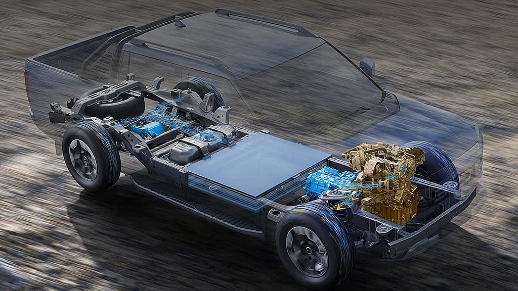 It features an all-wheel-drive system that uses a turbocharged four-cylinder engine and electric motor combo to power the front wheels and another electric motor for the rear axle, with no mechanical connection between the two ends.