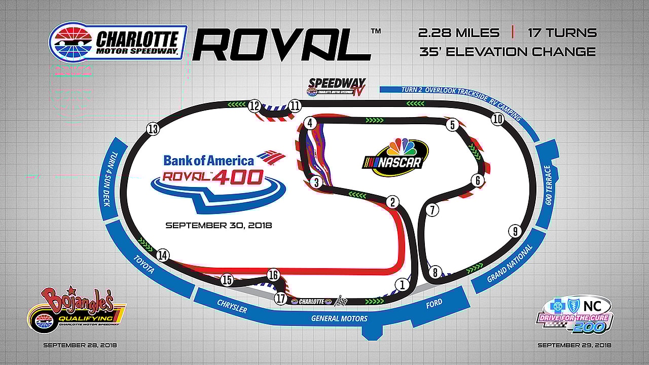 The Bank of America Roval 400 is scheduled for Oct. 13 and will be the cutoff race for the Playoffs Round of 12.
